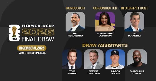Le tirage sera également animé par des icônes sportives internationales : Tom Brady, Wayne Gretzky, Aaron Judge et Shaquille O’Neal, tandis que Eli Manning assurera l’animation du tapis rouge, ajoutant une touche de glamour à l’événement.