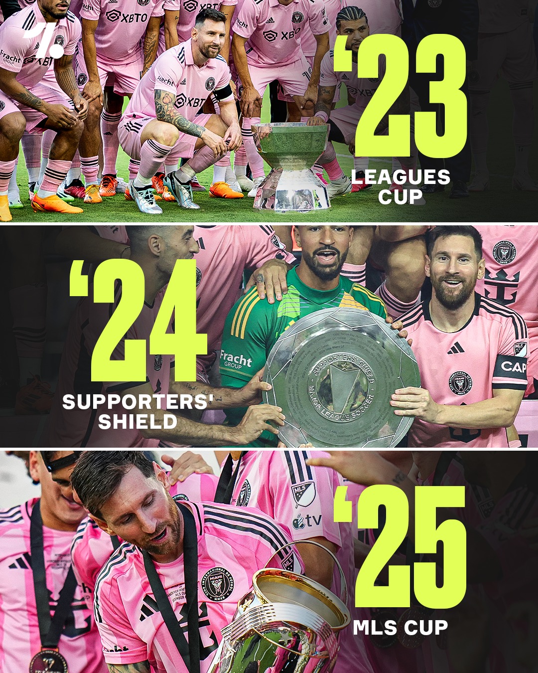 Depuis son arrivée en Major League Soccer, Lionel Messi n’a cessé d’imposer sa marque. L’Argentin a remporté au moins un trophée chaque année avec Inter Miami — et a également décroché un titre de MVP, preuve supplémentaire de son impact colossal sur la ligue.